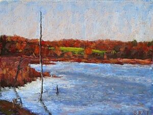 Image of “Fall Pond” pastel on paper by Bob Santandrea. Retail $340. SOLD